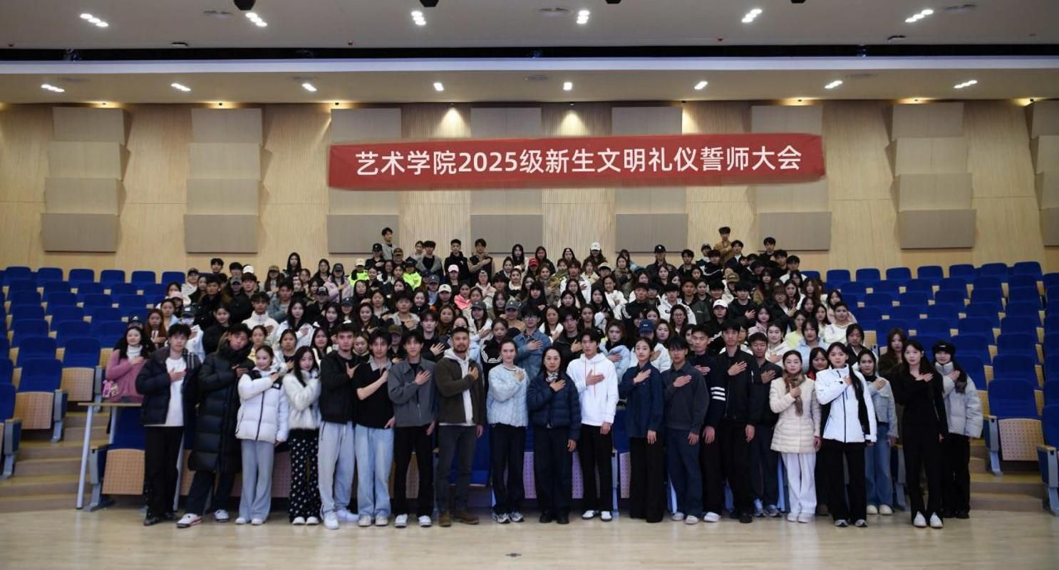 为引导新生筑牢文明根基、涵养礼仪素养,11月19日下午,艺术学院在德艺大楼音乐厅举办“正仪表、守礼仪、筑文明”新生文明礼仪教育暨誓师大会。学院党委书记张皓、辅导员及全体2025级新生参加,会议由艺术学院团总支第九届学生会主席赵芸主持。