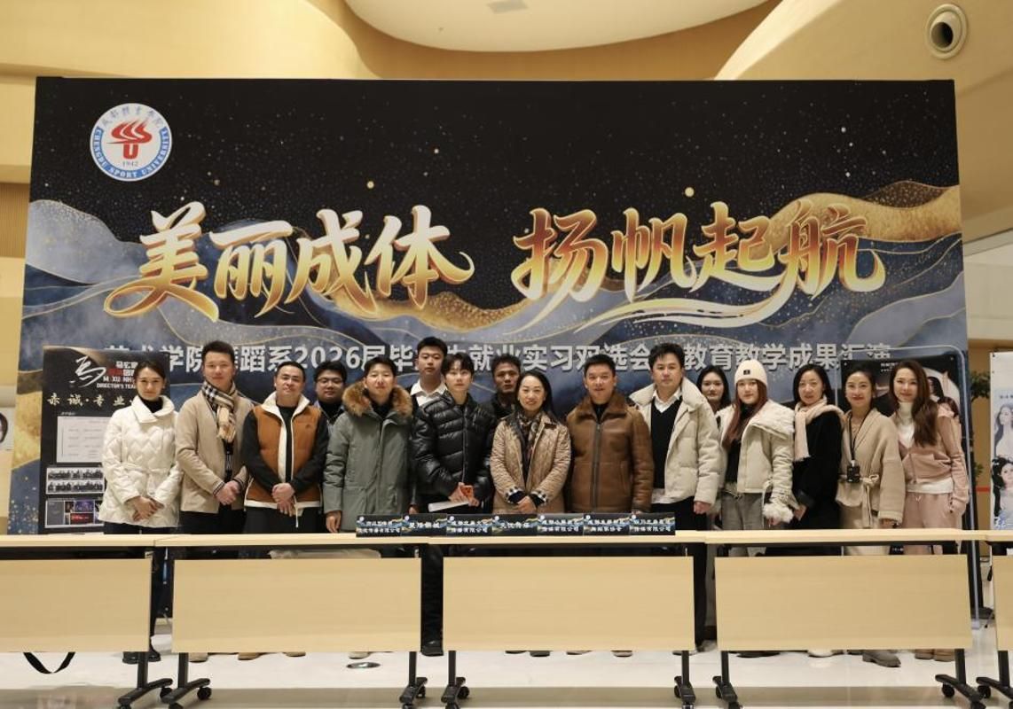 12月26日下午,艺术学院在成都简阳大剧院成功举办2026届毕业生就业实习双选会,并同步开展教育教学成果汇演。活动特邀成都小熊爱艺传媒有限公司、四川艺体桥文化传播有限公司、无忧传媒、成都优爱文化传播有限公司、四川光启星途传媒有限公司、成都东部新区舞蹈家协会等多家用人单位参加,为毕业生搭建高质量的求职平台。