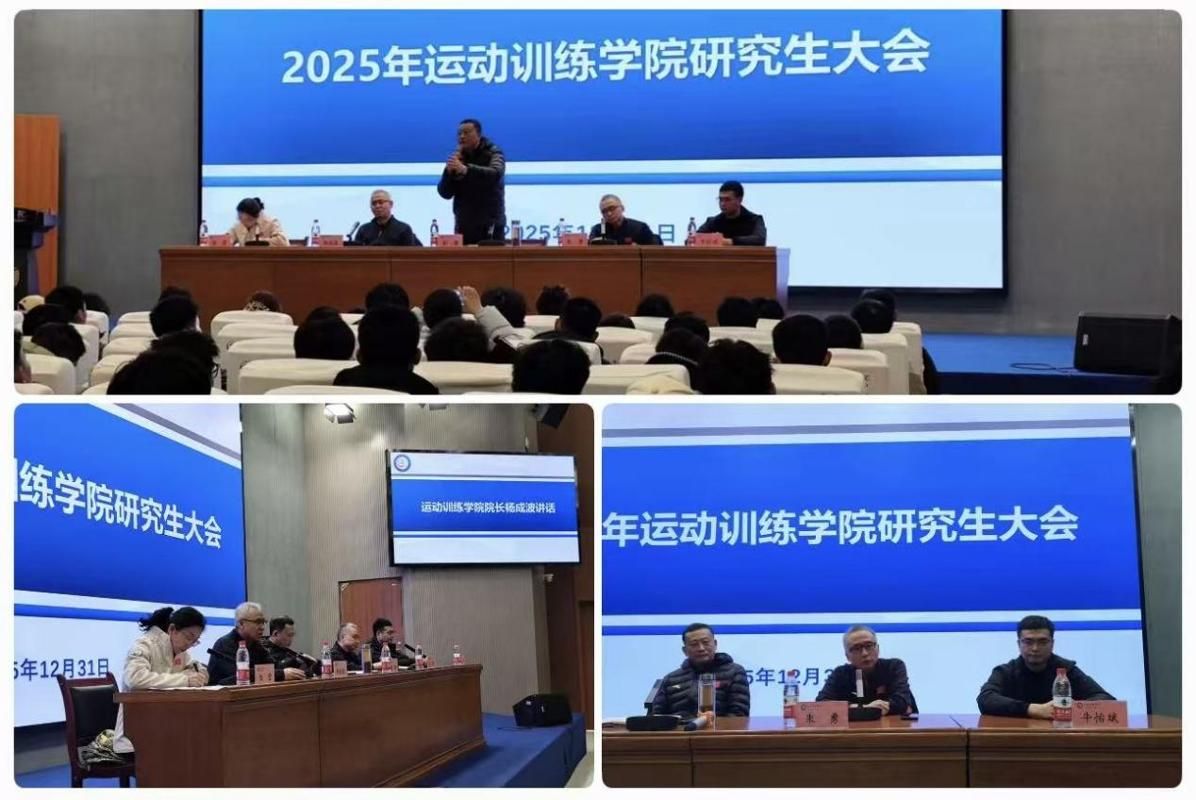 12月31日中午,运动训练学院在图书馆二楼学术报告厅召开全体研究生大会,运动训练学院党委书记彭健、院长杨成波、党委副书记朱勇、研究生管理办公室老师出席此次会议,学院全体研究生参加,研究生管理办公室副主任但莹主持。