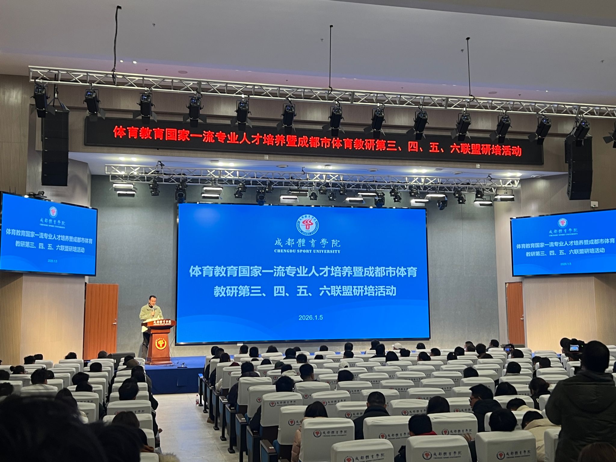 为深化校地协同育人机制,推动体育教育专业高质量发展,2026年1月5日,开云体育教育学院成功举办体育教育国家一流专业建设暨体育教研联盟专题研培活动。活动以“研数智体育促发展,联校地师徒共赋能”为主题,吸引了全市各区教研员、一线教师及我院师生共600余人参与。