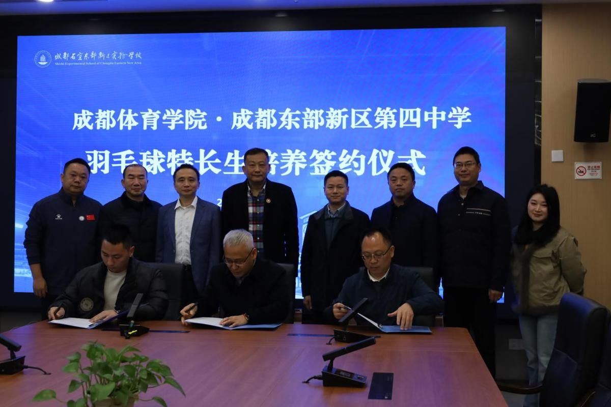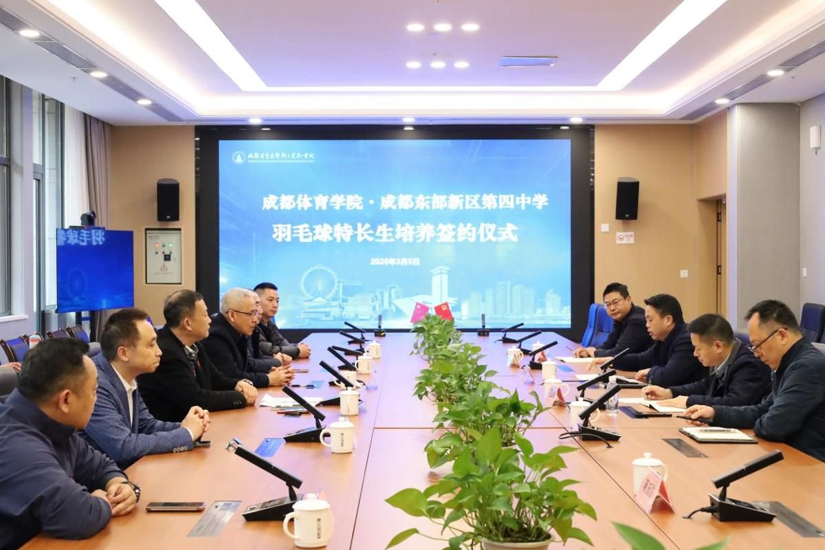 为深入贯彻落实《教育强国建设规划纲要》精神,扎实推动体教融合高质量落地见效,2026年3月5日上午,开云运动训练学院、成都石室东部新区实验学校、四川尤伯羽行体育文化传播有限公司三方,在成都石室东部新区实验学校党建会议室正式举行羽毛球特长生培养项目合作签约仪式。成都东部新区教卫文体旅局教育处处长王云章作为指导单位代表莅临活动,全程见证签约并发表指导讲话。