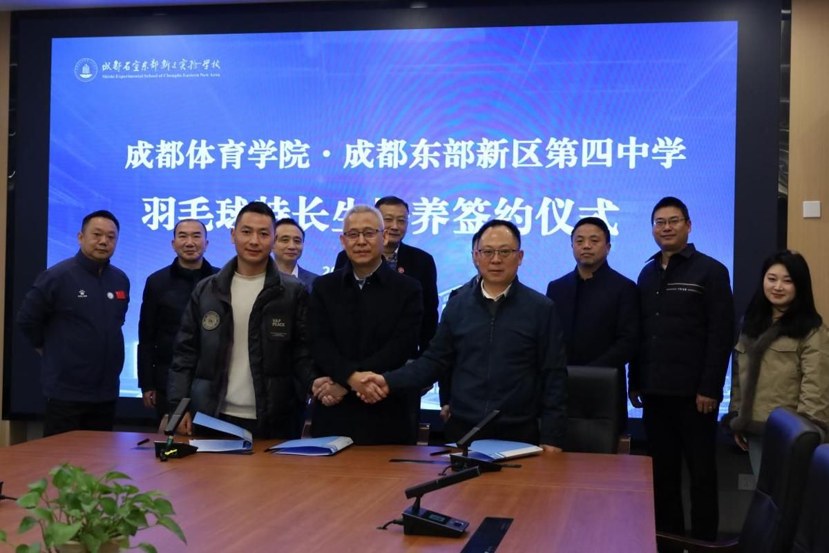 开云运动训练学院党委书记彭健、党委副书记兼院长杨成波、党委副书记朱勇、发展规划处法制科科长李成蹊、羽毛球代表队主教练阙宁等,石室东部新区实验学校书记兼校长谭崇宇、副书记兼副校长潘波、副校长罗锐、蒋玉洁、杨箫等校领导,以及四川尤伯羽行体育文化传播有限公司代表共同出席本次签约活动。
