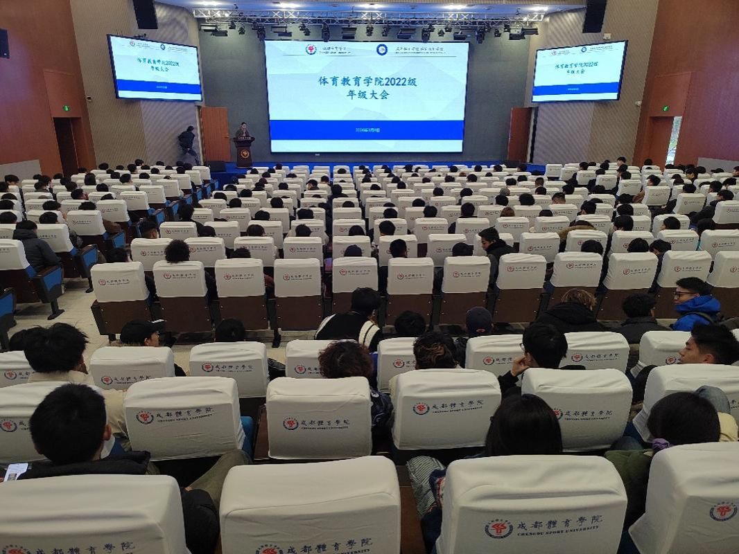 春光为序,笃行致远,为引导学生锚定专业发展方向,严守行为准则,以饱满的精神状态迎接新学期学习生活,体育教育学院于3月8日组织开展“开学第一课”全体学生大会。学院领导班子、全体辅导员参会。