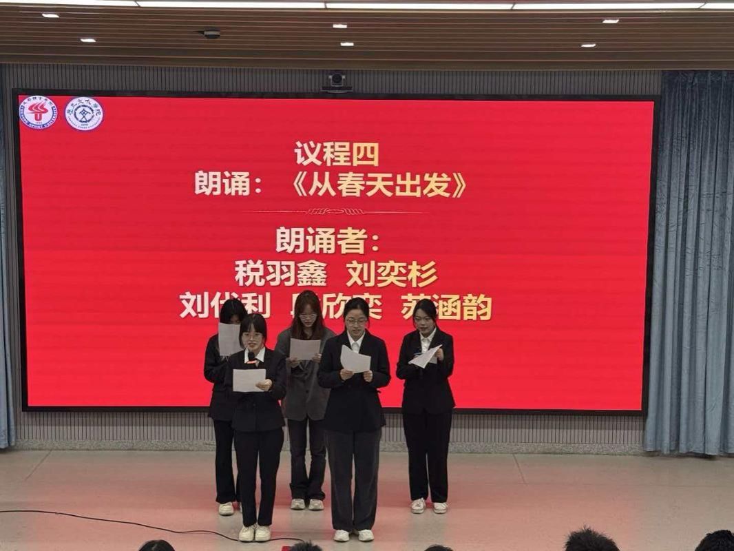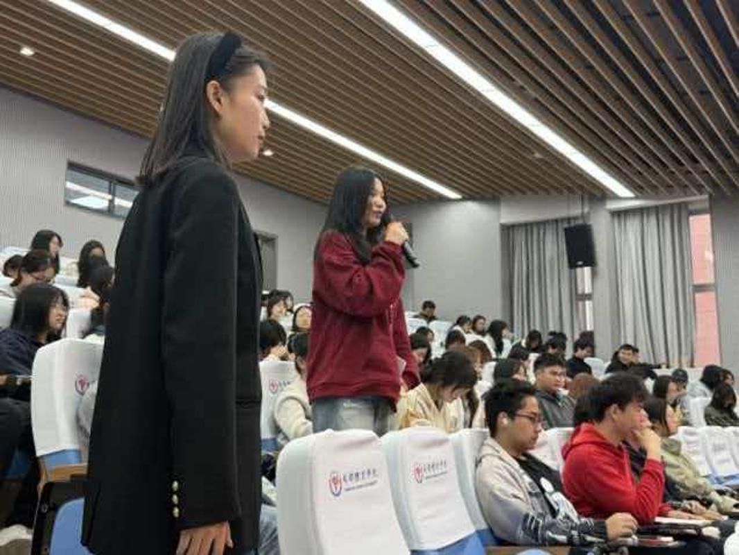 为增强班会的吸引力和感染力,现场还穿插了形式新颖的文艺表演,歌曲表演《世界赠予我的》与诗朗诵《从春天出发》,传递出对未来的美好憧憬与昂扬斗志,赢得全场阵阵掌声。在互动讨论环节,同学们围绕“学校‘十五五’规划,我关注什么?”“我为学校发展献一策”“如何将个人成长融入学校蓝图”三个核心议题展开热烈讨论。大家踊跃发言,从学科建设、人才培养、校园文化、实习实践等多个角度提出建设性意见,展现出强烈的参与意识和主人翁精神。