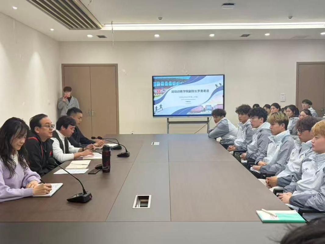 会上,学管四办分别从纪律、日常行为、学风等方面进行了全面的复盘,引导参会学生对照自身实际,深入查漏补缺,强化自我约束;副院长罗勇围绕学业与职业规划提出要求,作为新时代的大学生运动员,大家必须清醒地认识到自己身上肩负的“双重身份”——既是代表学校荣誉出征的竞技者,更是以求知为本的莘莘学子;特别强调了“守住文化底线”的重要性,告诫大家,必须严守学业标准,杜绝“挂科”与“混日子”的心态, 在高效完成训练任务的同时,挤出时间深耕专业领域,以自律和勤奋化解“学训矛盾”。