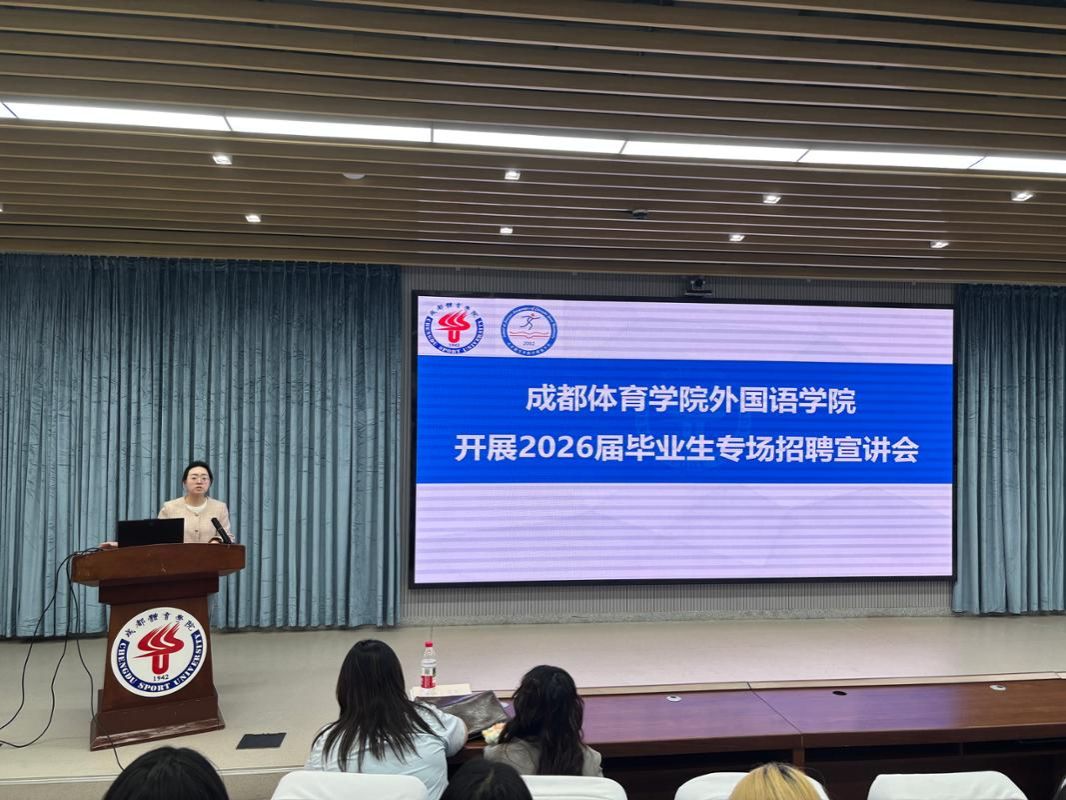 为深化校企协同育人拓宽就业渠道,助力2026届毕业生顺利就业,4月9日下午,外国语学院在行健楼100多功能室举行2026届毕业生专场招聘宣讲会。本次宣讲会特邀北京知外文化传播有限公司成都商务负责人朱泽钰和人事经理杨灵君担任主讲嘉宾。