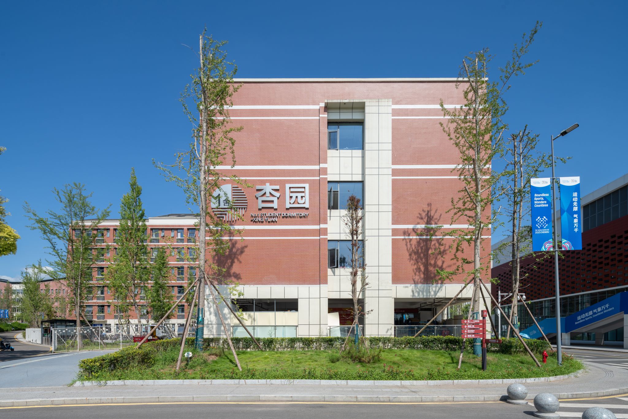 杏园:园内种植银杏树。建筑面积19822.37平方米,其中地上19066.51平方米,地下755.86平方米,地上六层,地下一层,建筑高度22.20米,框剪结构;设507间宿舍,可容纳2018人住宿。