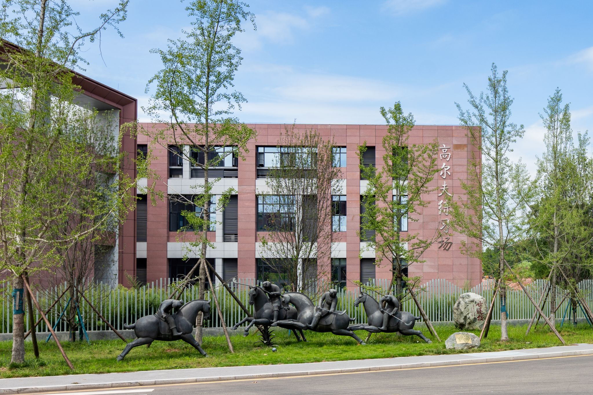 高尔夫球场:位于运动休闲馆一侧,供教学及休闲,有训练打位76个,户外高尔夫球场面积约7.5万平方米。配有果岭区和沙坑区,在练习木杆和长铁杆之余,还可以练习推杆、沙坑杆和短杆,是高尔夫专业学生及高尔夫爱好者练习挥杆以及接受专业培训的场所,可作为全民健身高尔夫活动举办场地或其他室外休闲体育活动健身场地。
