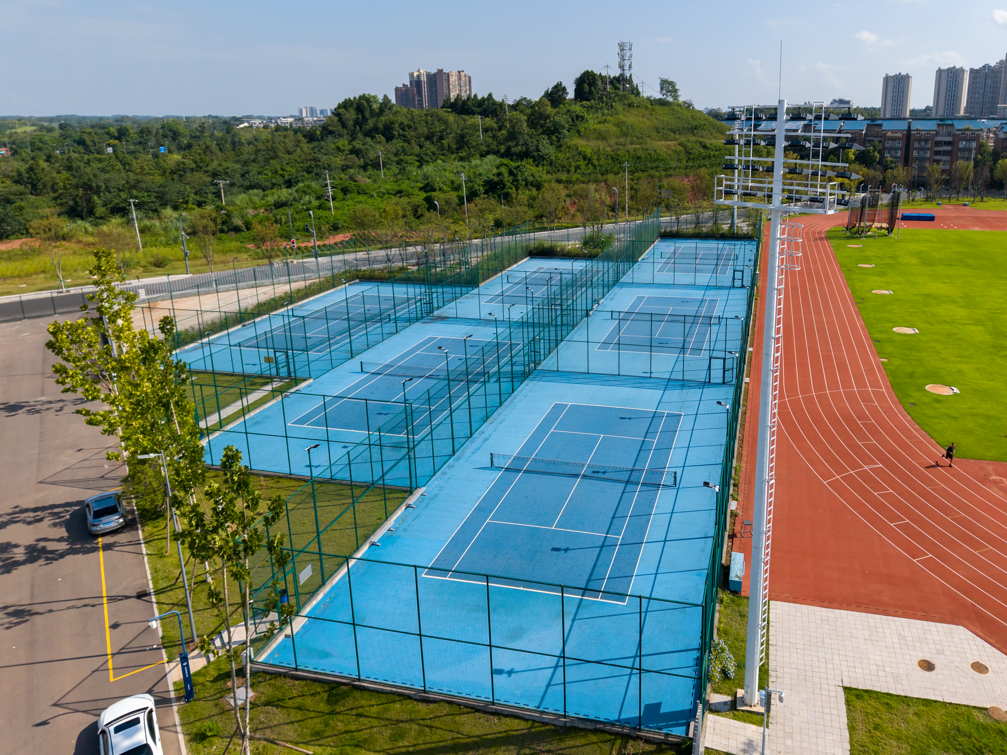 分别位于网球馆东侧和北侧,是网球教学场地及训练场地,能够为师生提供网球、板式网球等教学训练和娱乐健身的户外场地。