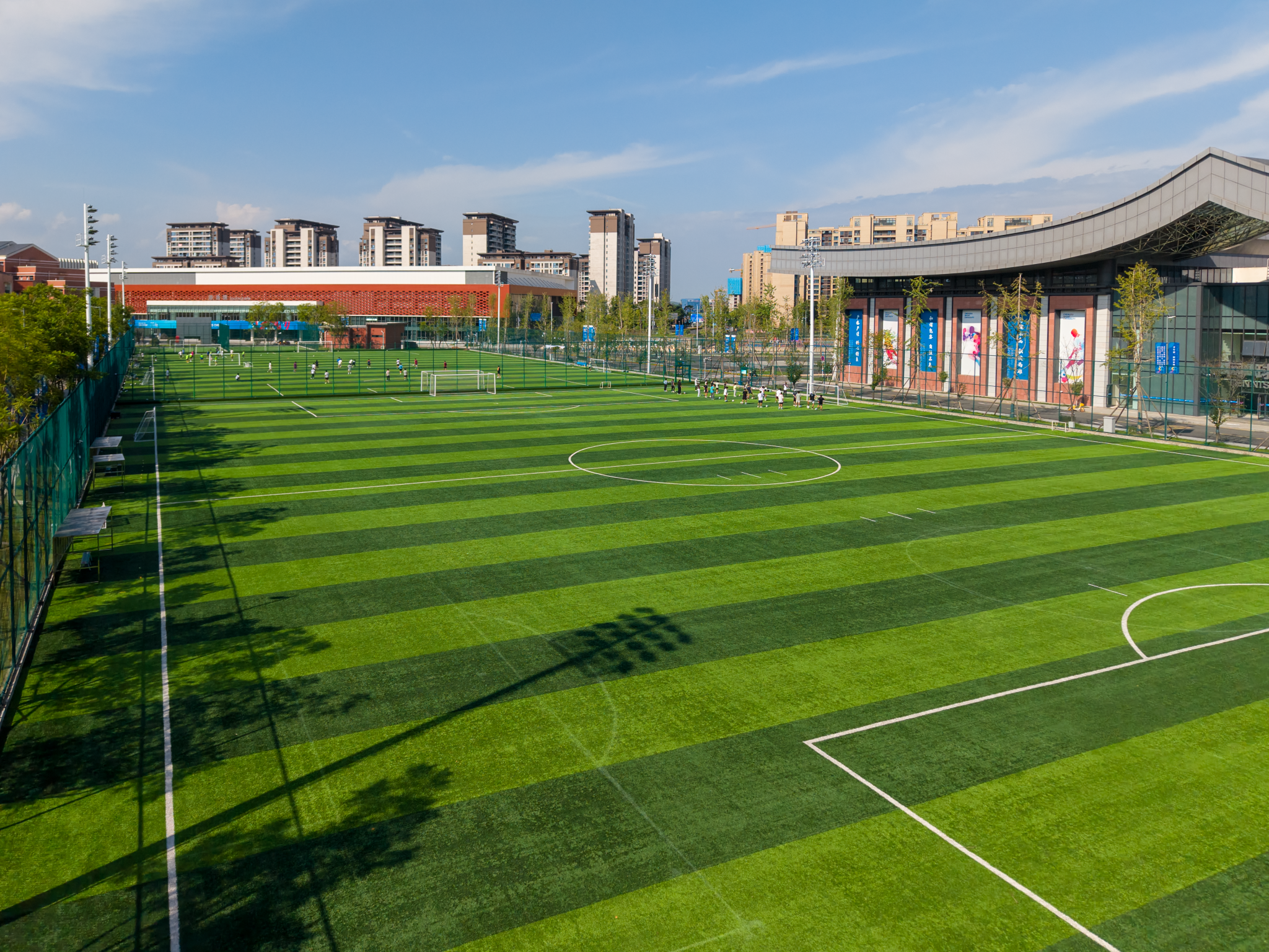 第一足球场、第二足球场及两处五人制足球场位于网球馆西侧,另有第三足球场、第四足球场及两处五人制足球场位于武术馆东南侧。