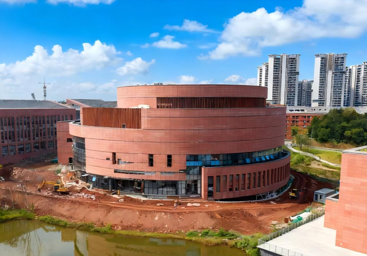 艺术中心:其功能为体育、艺术、文化交流场所,名称与实际功能契合。体育文化艺术中心建筑面积为12921.61平方米,其中地上8970.38平方米,地下3951.23平方米,地上两层,地下两层,建筑高度23.60米,框剪结构。设表演舞台约630平方米,固定座位1150座,贵宾厅1间。