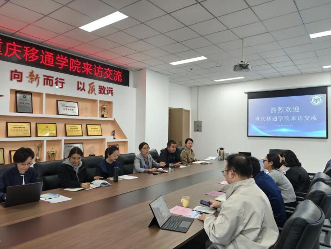 2025年10月21日上午,重庆移通学院大健康管理学院体育经济与管理教研室主任姜晴秋、专业负责人胡垚等一行4人来我院交流,我院副院长卿平及相关科室负责人参会。