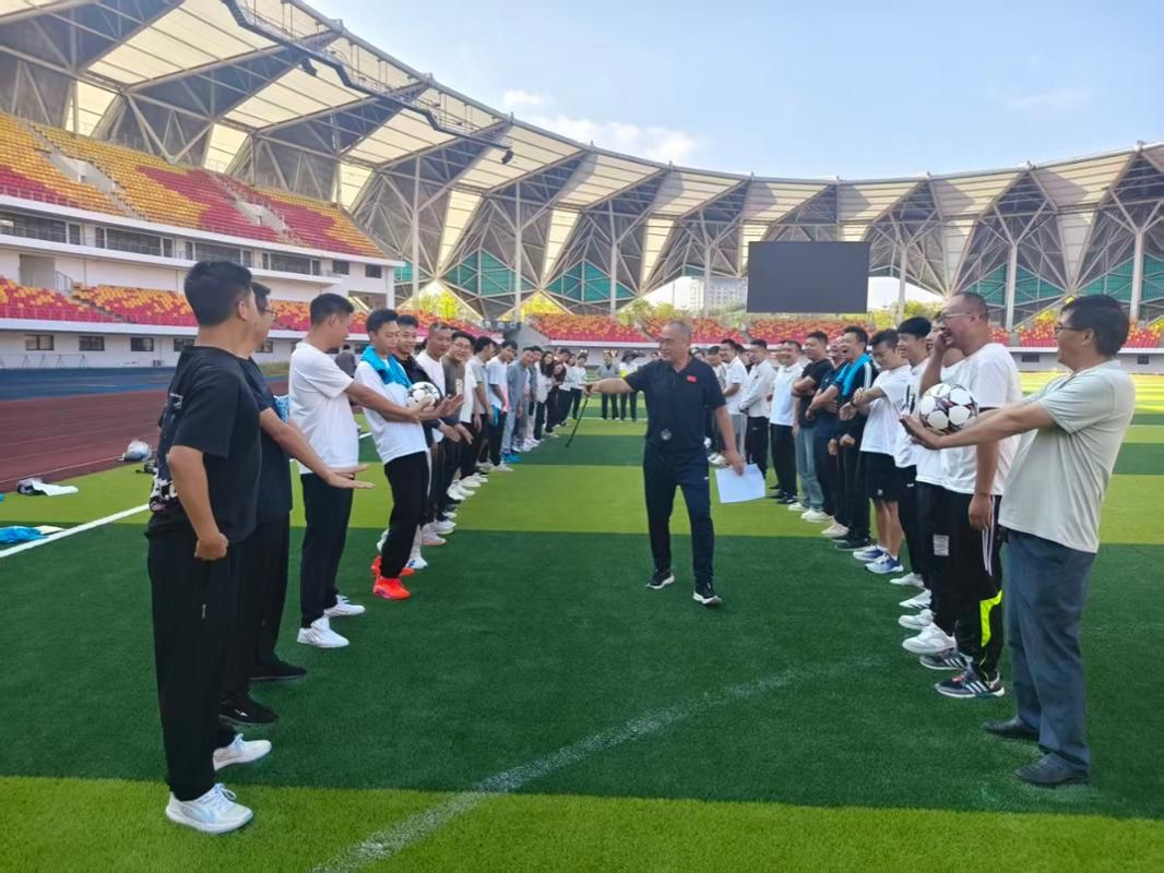 本次培训紧扣乡村教学实际,以“趣味性、实用性、可操作性”为导向,设置了“趣味教学、技术实训、理论讲解、实战演练”四大教学模块。课程涵盖球感游戏、1v1攻防、小组战术配合等内容,注重将教学方法与课堂实践相结合,帮助教师掌握易于复制和推广的教学技能。为增强培训针对性,项目组在训前开展学情调研,训中实施分层教学与个性化指导,训后组织说课展示与满意度评估。由高校专家与一线教师组成的讲师团队,围绕足球基本技能、游戏化教学设计、竞赛规则、课堂组织等关键环节,通过理论讲解、实操演练、分组研讨等形式,全面提升参训教师的课程设计能力和教学实施水平。