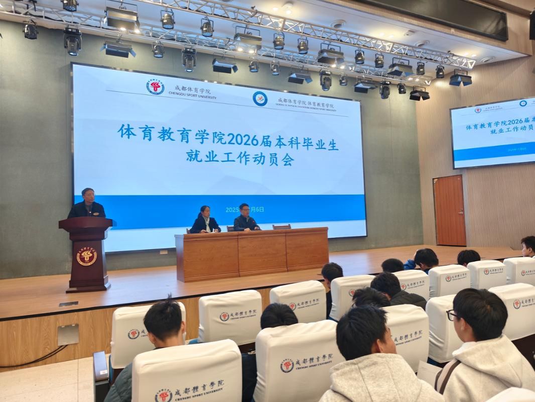 为扎实推进2026届毕业生就业工作,引导学生了解就业形势、掌握就业政策和明确职业方向,11月6日下午,体育教育学院在图书馆会议室召开2026届毕业生就业动员大会。学院党委副书记杨彪、毕业年级辅导员及全体2026届本科毕业生参会。