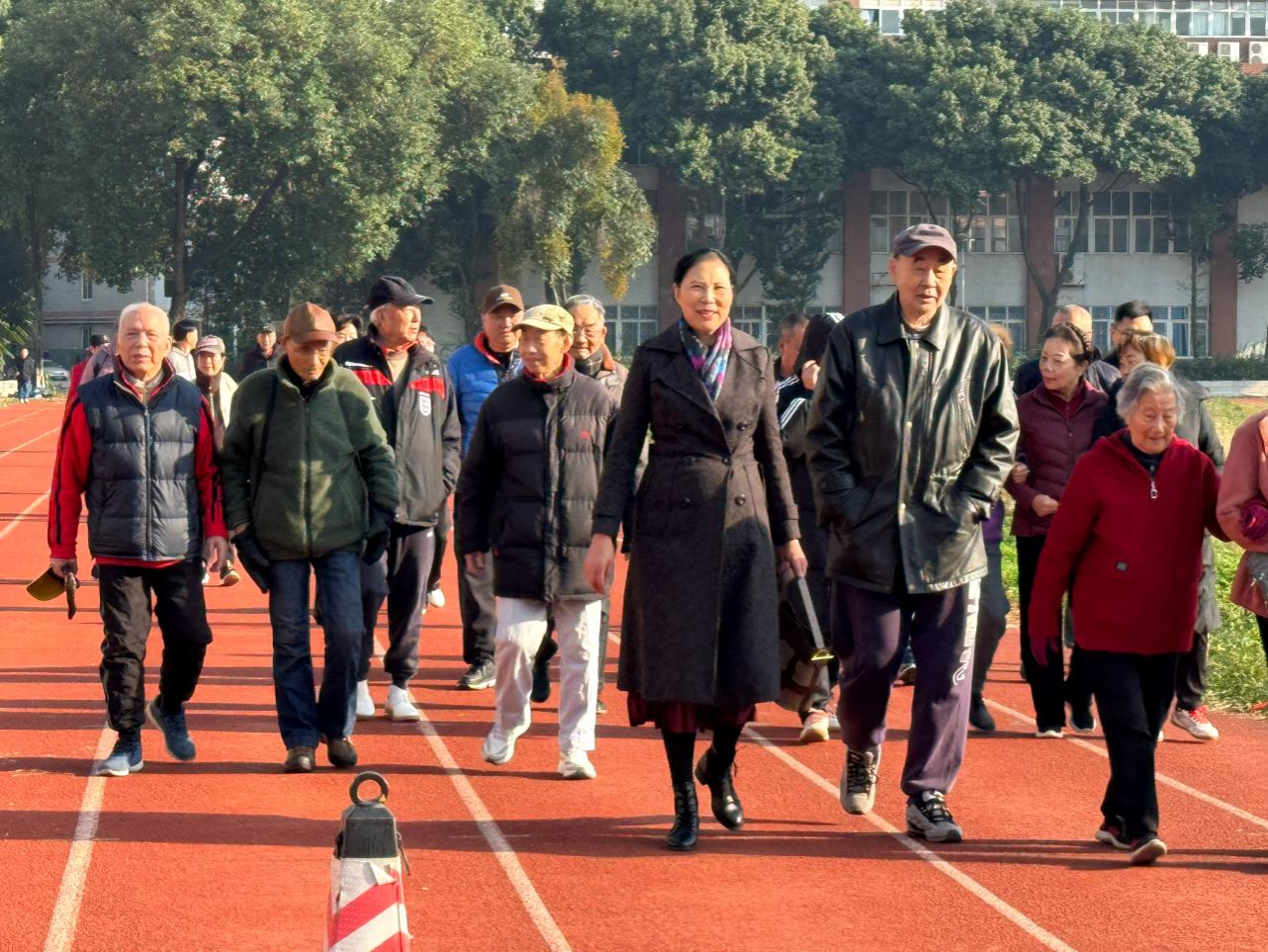 随着活动开始,老同志们容光焕发、步伐稳健,沿着跑道悠然漫步。大家三五成群,一边畅聊学校的发展变化与退休生活的点滴趣事,一边在冬日暖阳下合影留念。和煦的阳光洒满田径场,每个人都笑容洋溢,镜头定格下一张张灿烂的笑脸,记录着这温馨的时光。欢声笑语此起彼伏,气氛热烈而美好。