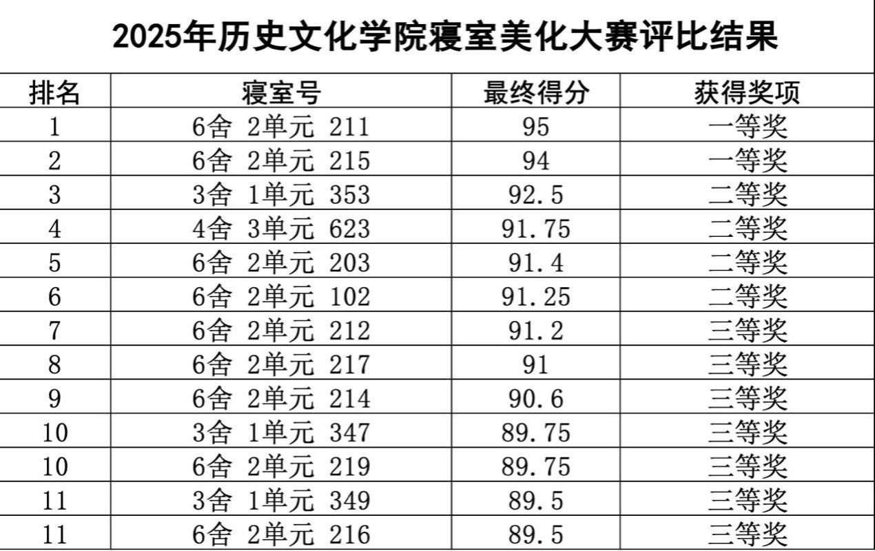 为进一步加强我院学风建设,美化学生的生活环境,增强集体荣誉感和团队意识,同时为同学们提供更多展示自我的机会,11月26日下午,历史文化学院举办了文博活动月——“筑寝藏古韵,以美润初心”寝室美化大赛。本次比赛面向全体学生。评审团由历史文化学院张玲玲、萨捷、刘合智、崔莉、彭露、徐斐斐、刘晓亮、唐诗吟老师与学生干部代表共同组成,深入学生寝室进行现场打分。
