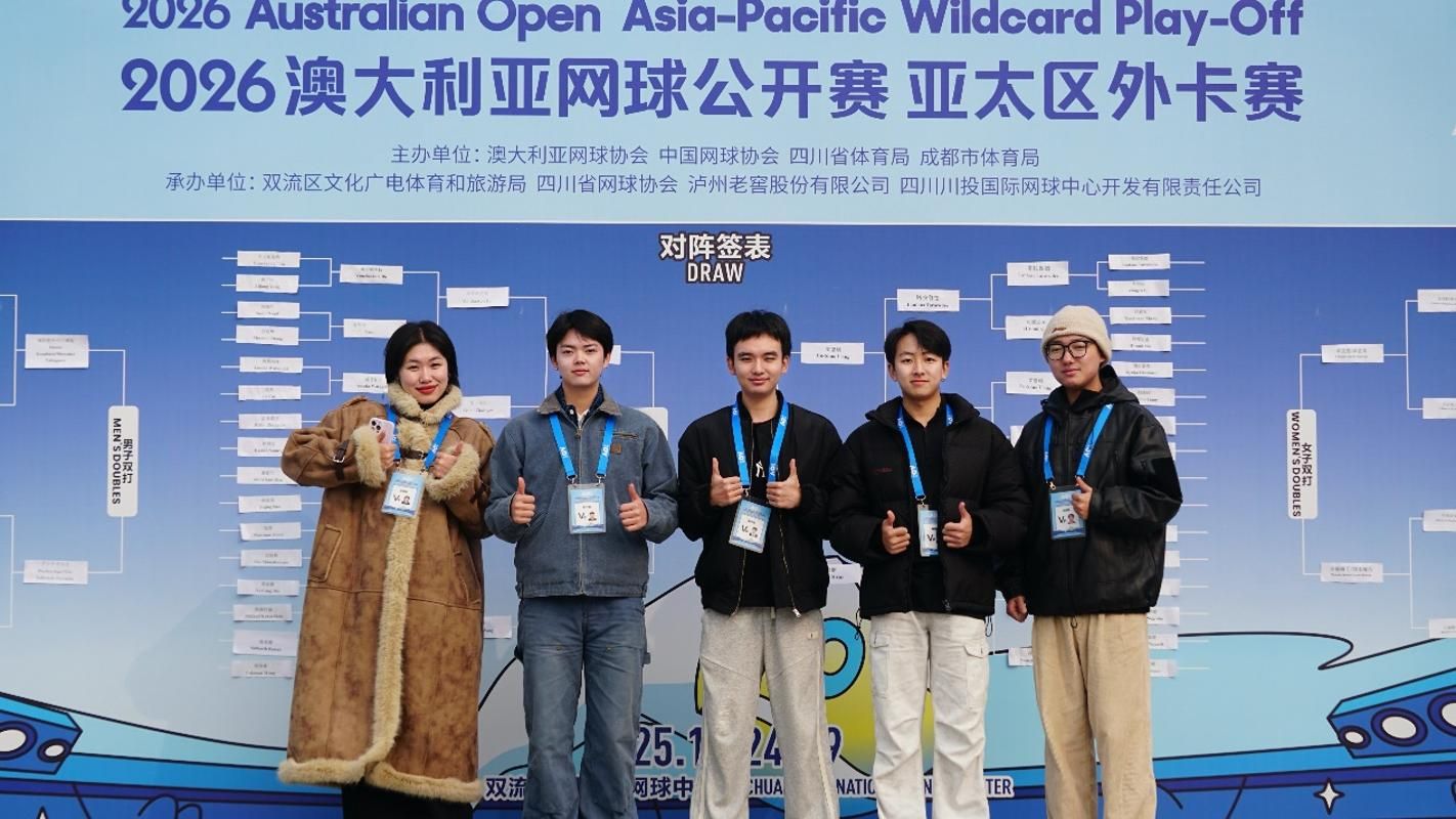 11月22日至29日,2026 Australian Open Asia-Pacific Wildcard Play-off(澳大利亚网球公开赛亚太区外卡赛)在成都市四川川投国际网球中心举行,来自亚太地区多国的职业网球运动员齐聚蓉城,争夺晋级澳大利亚网球公开赛正赛的宝贵外卡席位。作为赛事支持力量之一,外国语学院以专业、高效的语言服务保障,共选派刘平山(2024级体育翻译)、刘仔健(2025级体育翻译)、王天晓(2025级体育翻译)、王近妍(2025级MTI)和赵力锋(2023级本科)5名同学参与语言服务团队建设,形成多岗位、多场景协同运作的工作格局。为本次国际网球盛会顺利开展提供有力支撑,充分展示了“英体结合”人才培养模式的实践成效。