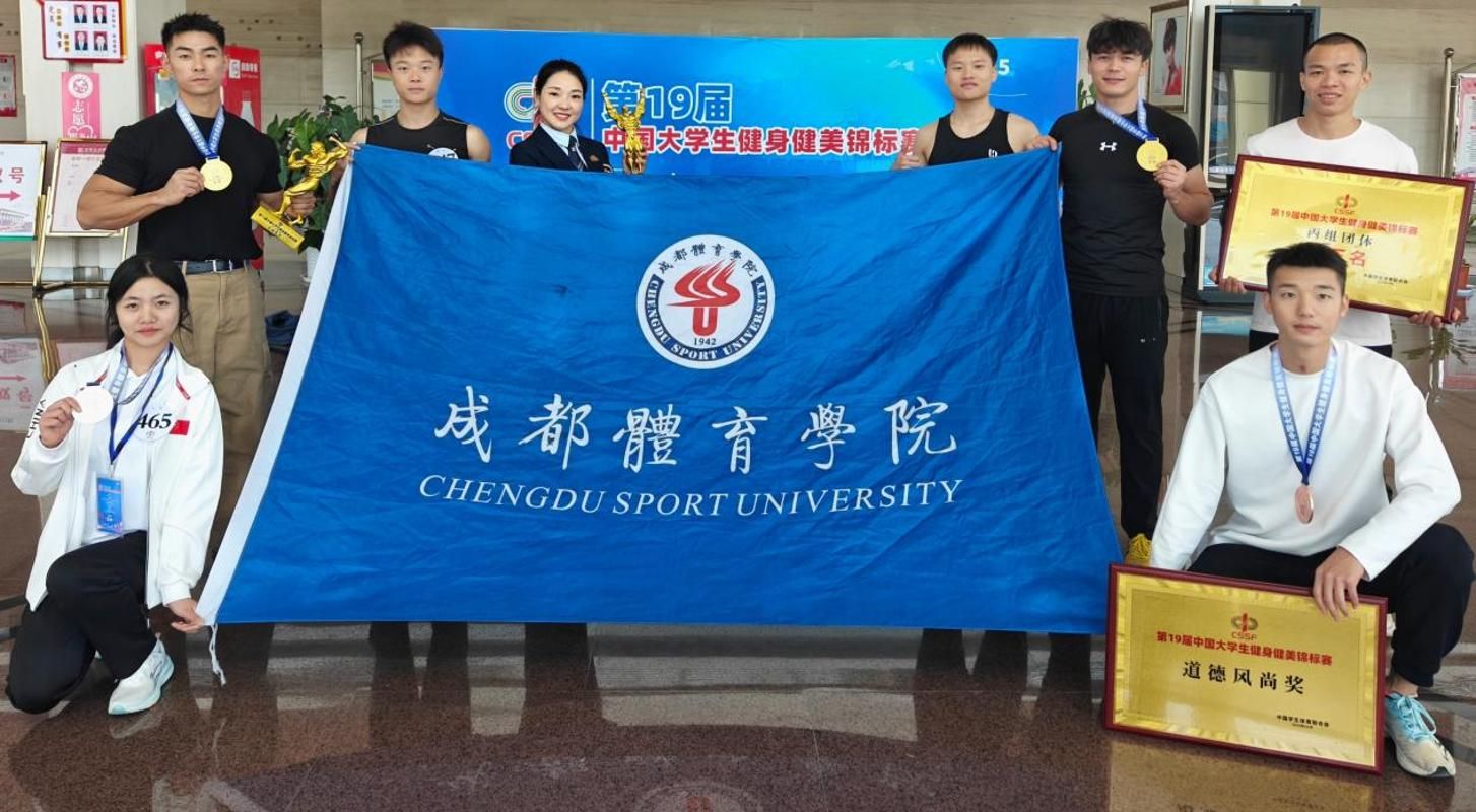 由中国学生体育联合会、嘉峪关市人民政府联合主办的第19届中国大学生健身健美锦标赛于10月9日至14日在甘肃嘉峪关市圆满落幕。我校健身健美临时代表队从全国105所参赛院校中脱颖而出,最终荣获2金、4银、3铜团体总分第三名的优异成绩,展现出我校在健身健美领域的综合实力与育人成果。