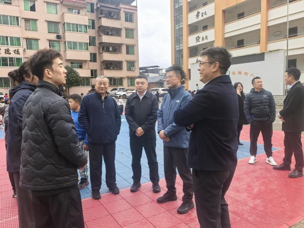 在教育帮扶调研中,胥万兵一行先后前往毛坪乡小学、县街小学等 5 所学校,深入课堂察看 41 名支教学生教学实况,询问备课教研、食宿保障等情况。他高度赞扬支教学生 “勇于吃苦、甘于奉献” 的担当,鼓励大家珍惜实践机会,发挥体育专业优势,在教学中锤炼本领,为民族地区教育注入活力。
