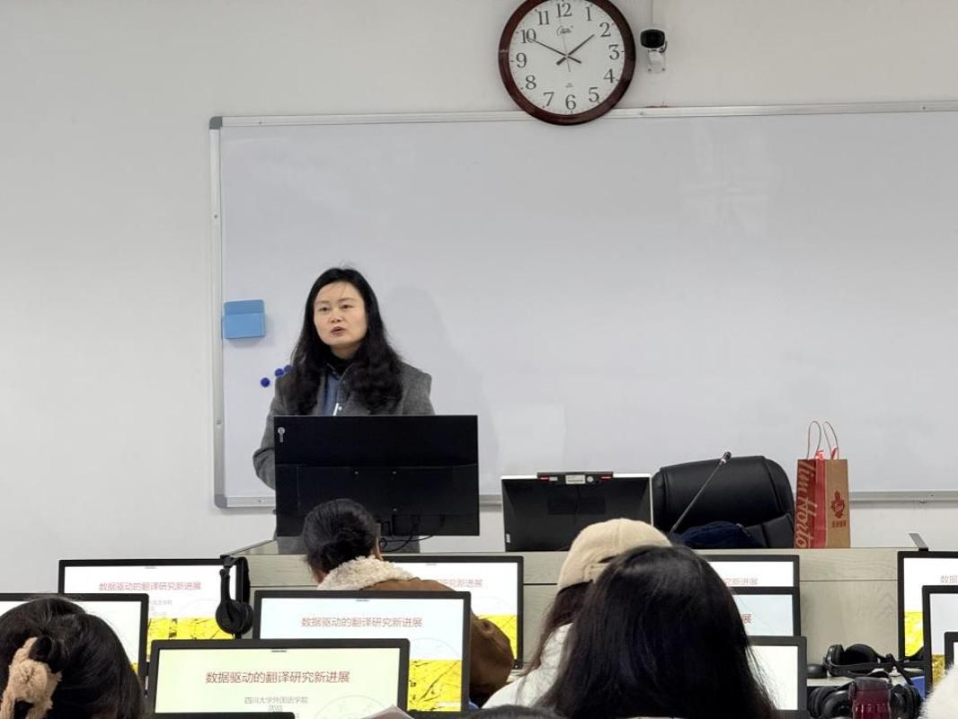 11月24日上午,“成体大讲堂”科研讲座系列活动在怀贤楼A308开讲。四川大学外国语学院特聘研究员、博士生导师周晶教授受邀到外国语学院做题为《数据驱动的翻译研究新进展》的讲座。